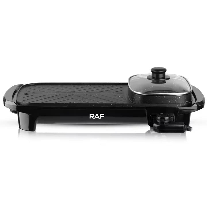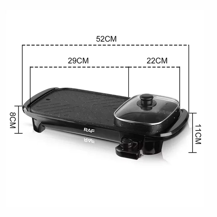 - This 2 in 1 Electric Smokeless Grill and Hot Pot can simmer, boil, fry, roast, stir-fry in a pot, suitable for family gatherings&party.Perfect in all foodie occasions.Detachable hot pot, easy to use and clean. The frying pan oil is automatically dropped to the oil tank through the oil discharge port, wipe it with a soft cloth when washing.