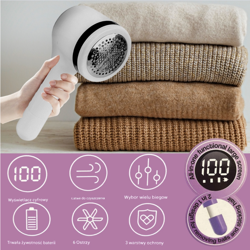 - 6-Blade Power System – Removes lint, fuzz, and pills quickly and safely.
