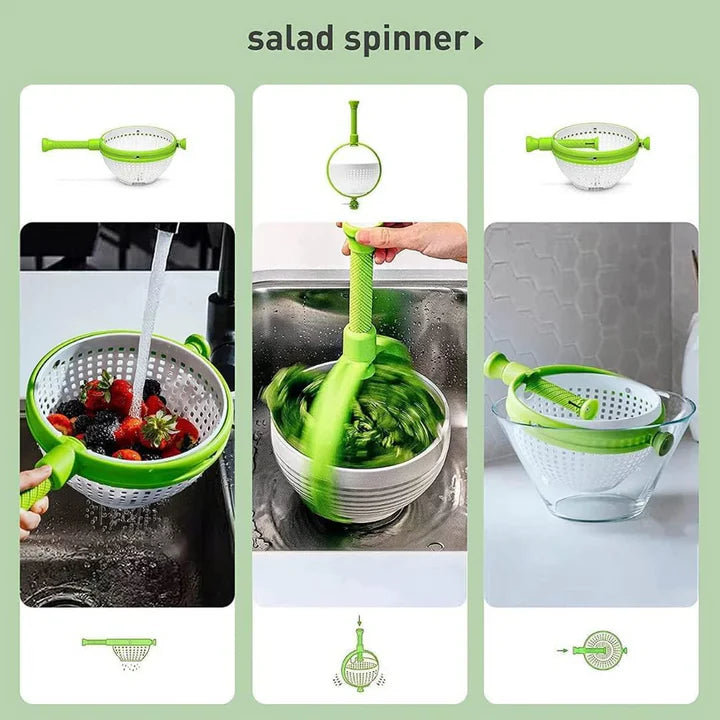 - Quick and easy draining of pasta, vegetables, and more with this spinning colander.