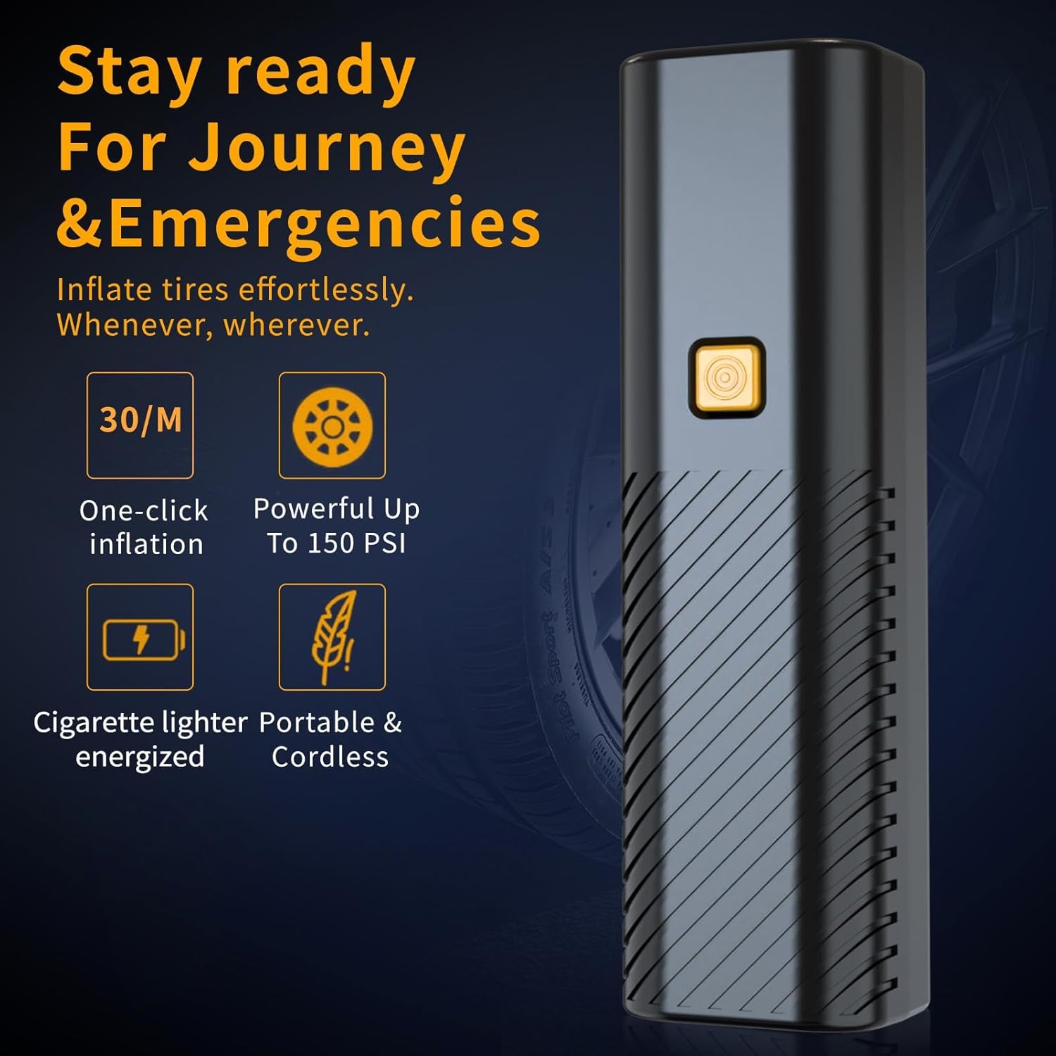 -Faster Tire Inflation: High-performance chip & powerful motor inflates tires from 30 PSI to 35 PSI in just 50 seconds. Fully inflates car tires (0-36 PSI) in 1 minute. Up to 150 PSI.