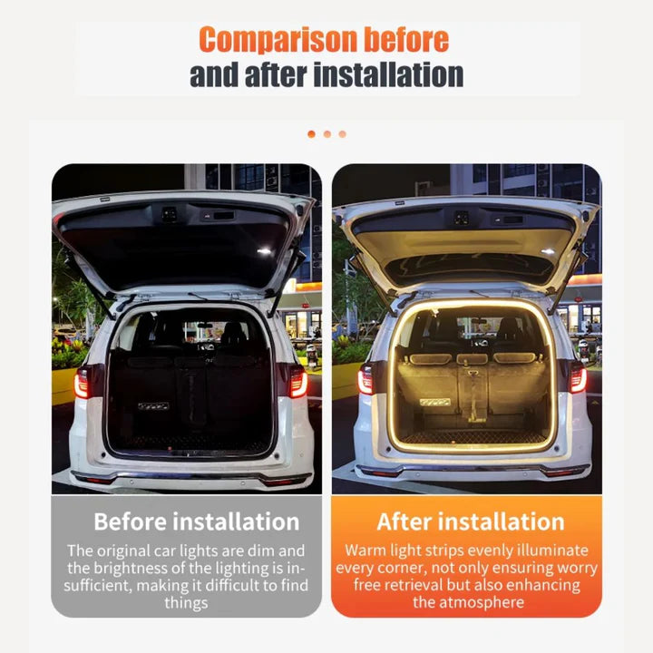 - Customizable Length: The trunk LED light is designed with customizable length, which can be cut according to the size of the frunk. This feature ensures that the LED Strip perfectly fits the frunk and provides adequate lighting and with Automatic sensing switch.